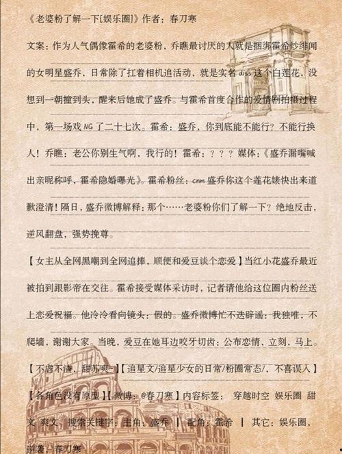 那天,我正刷着微博,突然看到一个熟悉的账号发布了一条推文小说。这小说的标题就让人眼前一亮:“娱乐圈背后的秘密,你敢看吗?”好奇心驱使我点开了链接,没想到,这竟然是一篇关于娱乐圈的揭秘小说。